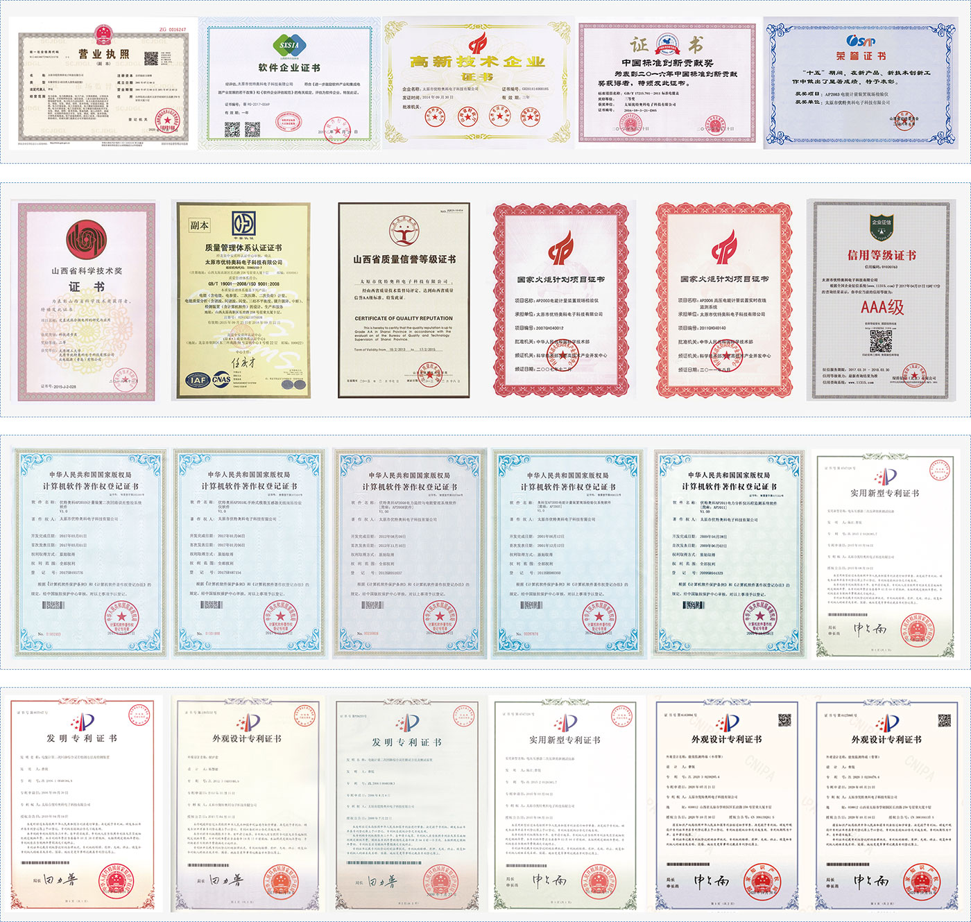 優(yōu)特奧科以科技為先導(dǎo),以質(zhì)量為中心,公司技術(shù)中心和生產(chǎn)線配備了試驗(yàn)設(shè)備,推行了信息化管理體系,并與太原理工大學(xué)組成產(chǎn)學(xué)研聯(lián)合體。公司目前擁有40項(xiàng)專利技術(shù),26項(xiàng)登記軟件產(chǎn)品和10余項(xiàng)省級(jí)科技成果,全面通過ISO9001國際質(zhì)量管理體系認(rèn)證、ISO14001-2015環(huán)境管理體系證、ISO18001-2007職業(yè)健康與安全管理體系認(rèn)證、3A信用等級(jí)認(rèn)證。