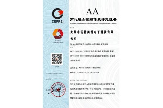 近日,我公司正式獲得兩化融合管理體系A(chǔ)A級評定證書,標(biāo)志著在信息化與工業(yè)化融合方面取得顯著進(jìn)展。此次評定嚴(yán)格按照國家標(biāo)準(zhǔn),歷經(jīng)多個(gè)環(huán)節(jié),最終順利達(dá)標(biāo)。